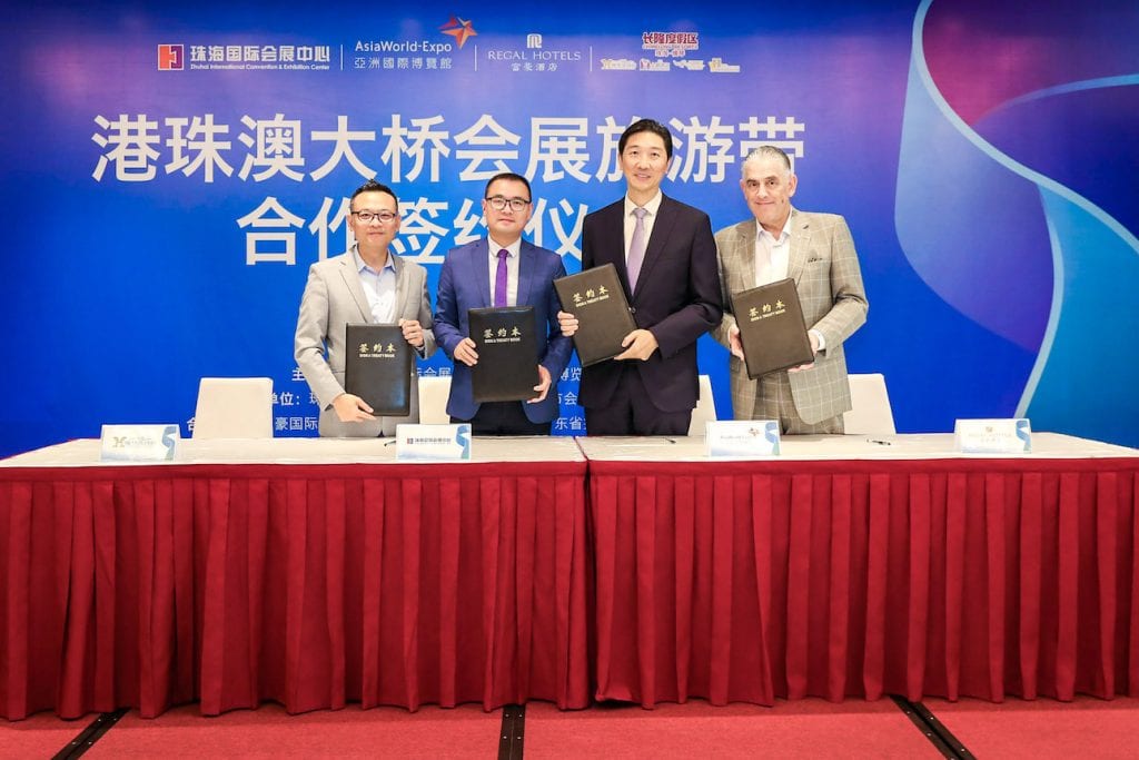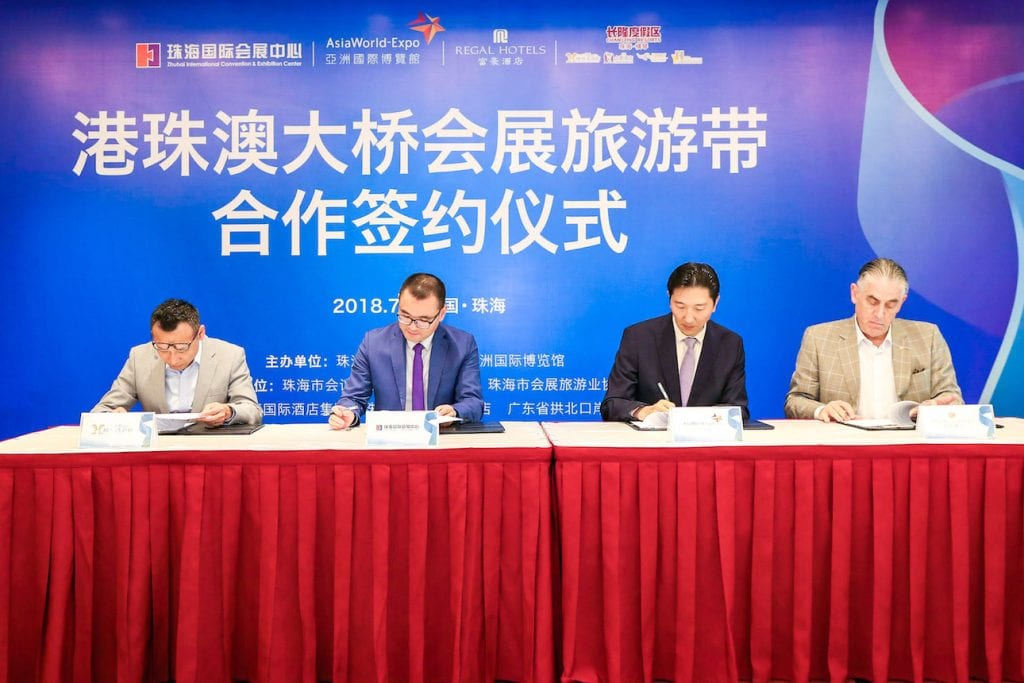 (张广文/ 采访报道)近日,亚洲国际博览馆与珠海国际会展中心、香港富豪酒店及珠海横琴长隆湾酒店正式组成「港珠澳大桥会展旅游带」联盟,签署港珠澳大桥会展旅游带战略协议。各方未来将合作推进两地会展旅游业发展,推广「一展两地」的博览模式,及「一程多站」旅游模式,共同把握粤港澳大湾区机遇。