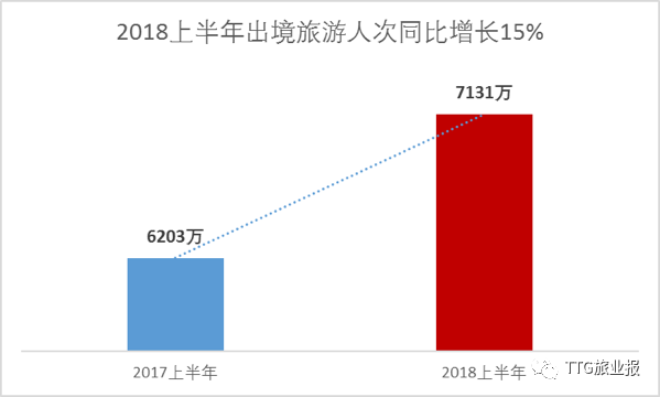 文化和旅游部数据中心近日发布的2018年上半年旅游经济主要数据报告显示,随着“一带一路”建设的不断推进,我国公民出境旅游目的地国家不断增加,2018年上半年出境游人次达到了7131万人次,比去年同期的6203万人次增长15%。