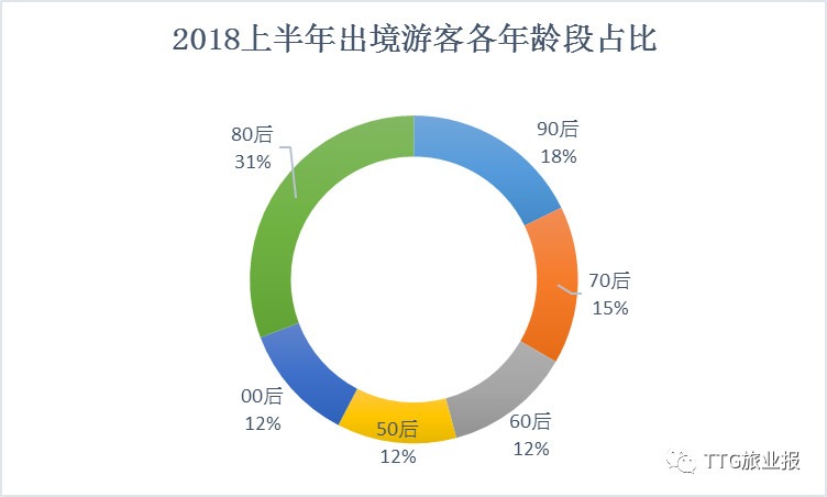 根据携程出境游订单的统计,上半年出境旅游者中,53%是女性,47% 是男性,女性比例高6个百分点。从年龄结构看,80 后依然是出境游的中坚力量,80后占比31%。随着90后一代已经全部成年,90后开始超越70后成为出游主力军,上半年90后游客占比18%,比70后高2个百分点。