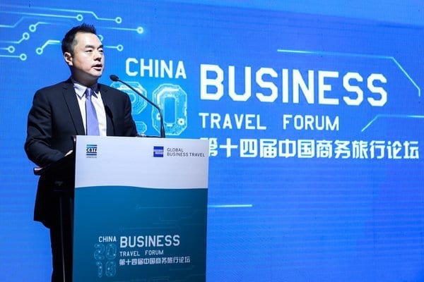 国旅运通全球商务旅行副总裁、总经理谭浩凌在第十四届中国商务旅行论坛发表讲话