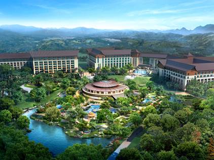 四川经都置业有限公司倾力打造的明宇豪雅青城项目,位于都江堰市滨江文化娱乐集聚区。为与项目的高端定位、国际化旅游区位与完善配套设施相匹配、契合,天府明宇商旅采用双品牌策略,将凯悦嘉轩及明宇豪雅酒店及度假村品牌引入项目。凯悦嘉轩酒店、明宇豪雅饭店占地面积147亩,其中包括国际会议中心、高端行政会所、超大宴会厅以及2.1万平方米的道家温泉俱乐部,总投资约10亿元。