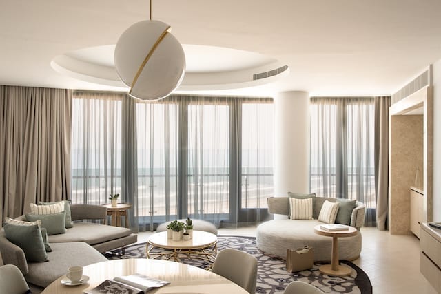 宾客可在设计精美的向阳房俯瞰澄澈的海水,亦可透过全景套房的落地窗及阳台欣赏壮阔的海景。卓美亚萨迪亚特岛度假酒店设有三处无边际泳池、一处儿童泳池及终于来到阿拉伯联合酋长国的Bodyism健身中心,配有2-4间卧室的双层别墅同样为宾客提供私人泳池。