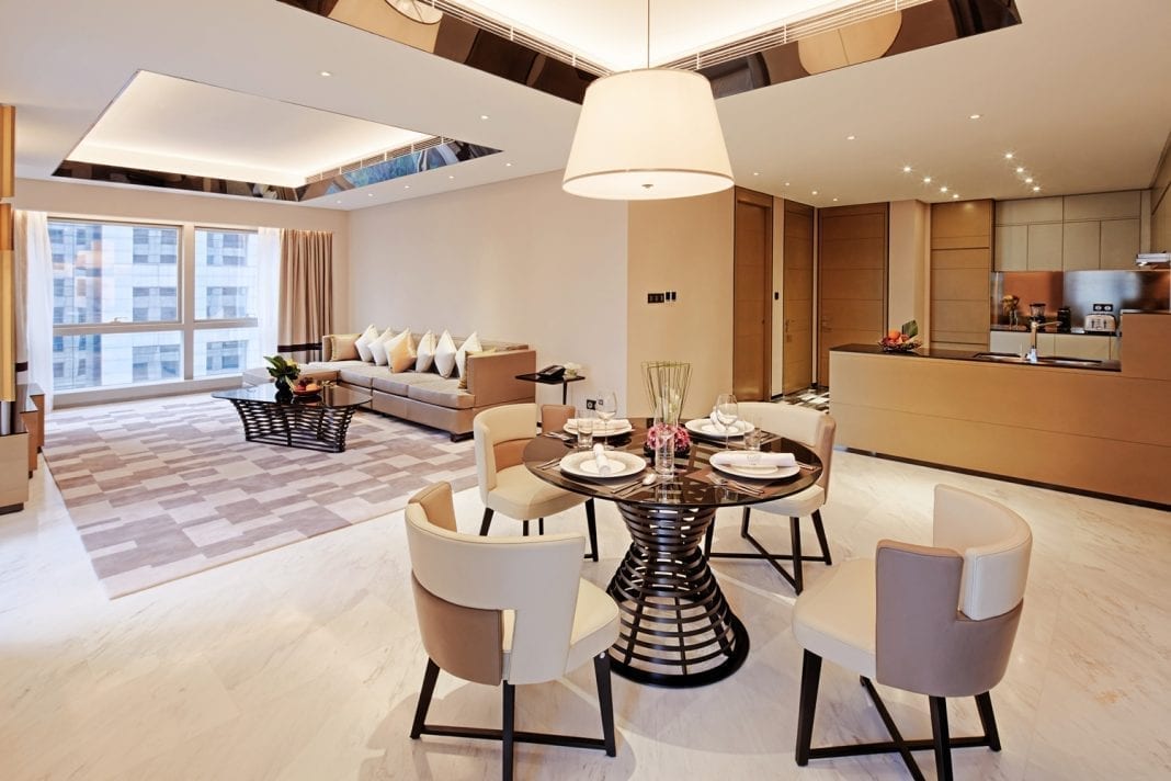 广州卓美亚礼庭公寓拥有169间一到四房套房,南北两翼套房风格各异——南翼现代简约,摩登优雅的设计呈现迷人氛围;北翼传统奢华,重现宫廷元素,展现经典华丽美态。精致的室内设计流淌着多元文化与精良匠心,激发宾客源源不绝的生活灵感,为旅居于此感到自豪与喜悦。