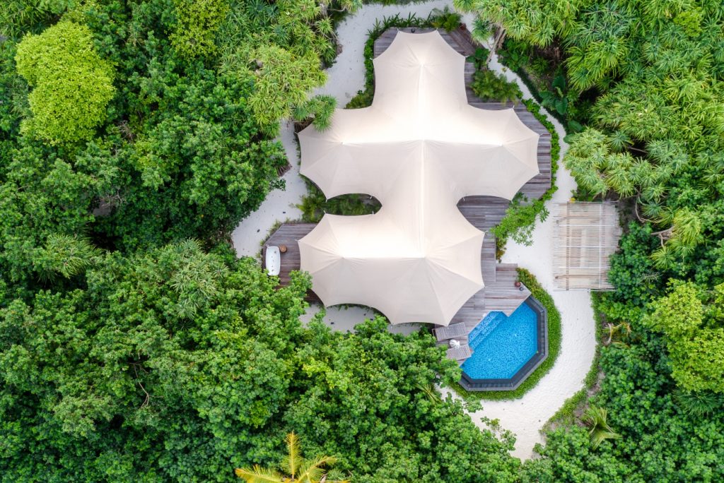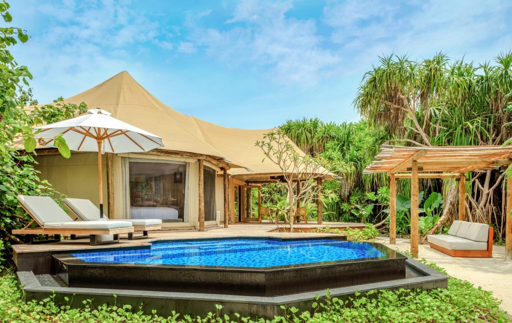 这片位于隐秘自然奇境之中的帐篷别墅,可与岛上精美绝伦、丰富多样的动物以及葱茏翠绿的植物相互映衬。木质结构、琥珀色室内装饰,以及白色帆布包覆的墙面,外加空间宽敞,并配备手工木质家具、沐浴设施及泳池的露天休闲区域,令这片室内和户外和谐相融的区域成为旅客亲近大自然的不二之选。