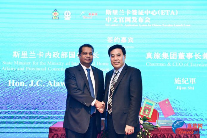 斯里兰卡内政部长Hon. J.C. Alawathuwala表示,“斯里兰卡作为中国一带一路战略的关键节点,发展战略对接已然成为当下与未来中国与斯里兰卡巩固睦邻友好、做互利共赢发展伙伴的重要桥梁,是兩国推进一带一路建设中政策沟通的重要举措,也是中斯发展全天候友谊、建设命运共同体的新纽带。中国是斯里兰卡旅游业第二大市场,希望通过与真旅集团合作开发的斯里兰卡签证(ETA)申请系统,更好地服务于中国游客,让更多的中国游客走进斯里兰卡。”