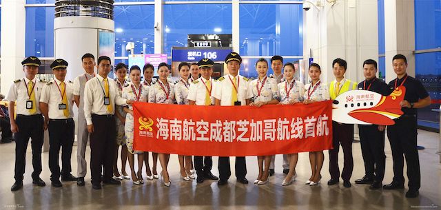 北京时间9月16日21:00,海南航空HU705航班从成都双流国际机场起飞,标志着海南航空成都至芝加哥直飞航线成功首航,这是继北京直飞芝加哥航线之后,海南航空开通的第二条直飞芝加哥航线。这也是海南航空继开通成都=洛杉矶、成都=纽约航线之后,在成都开通的第三条直飞北美航线。该航线的开通,将进一步完善成都至北美的航线网络,满足成都、西南地区旅客日益多样化的出行需求。