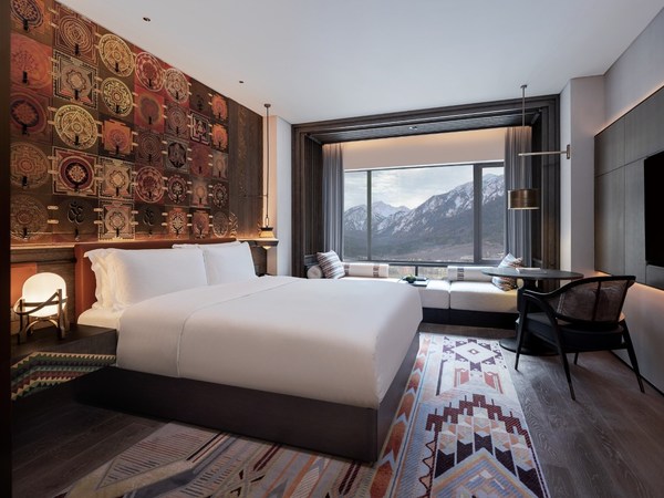 九寨英迪格酒店坐落于四川省阿坝藏族羌族自治州,中查沟内全新的鲁能美丽汇小镇核心位置,与九寨沟风景区、“嫩恩桑措”神仙池、多彩中查等美景近在咫尺。九寨英迪格酒店由香港知名设计公司CCD亲自操刀,以“神鹰”为设计灵感主线,并汲取祥巴、羌绣、牦牛、火塘等本地独有的藏族生活艺术形式的设计元素遍布于酒店各个角落。两百间客房及套房以羌族传统布艺刺绣及阿坝藏族独有的唐卡绘画形式,为入住宾客展现“藏·藏”主题的邻里故事。