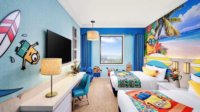 4月11日起,北京环球度假区环球影城大酒店全新推出的小黄人主题房,基于照明娱乐全球热门影片《神偷奶爸》系列全新打造的小黄人主题客房,将从主题房间到主题景区,一站式包揽你的“小黄人”萌趣体验。该主题房将于2022年5 月 1 日起开启宾客入住,为五一假日的“微度假”旅游市场带来更多选择。