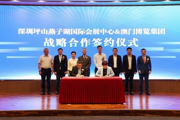 5月12日上午,深圳坪山燕子湖国际会展中心与澳门博览集团战略合作签约暨深圳澳博会展有限公司揭牌仪式在深圳市坪山区成功举办,为深圳会展业五月重启加油。