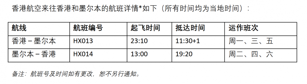 墨尔本机场行政总裁Lorie Argus女士表示,香港航空的加盟,将为往返香港这个亚洲主要国际枢纽的旅客,提供更丰富的选择和更充裕的运力。香港是墨尔本机场第四大国际客源市场,我们预期这条新航线将有强劲的市场需求。