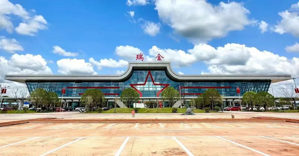位于瑞金市叶坪镇的江西赣州瑞金机场总投资16.6亿元,历时五年建成,设计目标为2030年实现年旅客吞吐量55万人次、货邮吞吐量2000吨、飞机起降6460架次。机场现拥有7000平方米航站楼、8个民航机位,跑道长2600米、宽45米。首航航班由北京和上海往返瑞金。中国国际航空航班于9月28日7:30从北京大兴起飞,10:15抵达瑞金,航程2小时45分;中国东方航空航班于同日14:05从上海浦东起飞,16:00抵达瑞金,航程1小时55分。