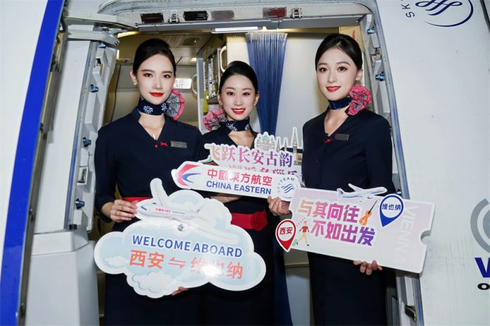4月20日,东航MU5063航班搭载246名旅客从西安咸阳国际机场起飞,飞往奥地利首都维也纳。这标志着中国西北地区首条直达奥地利的国际航线正式开通,“古丝绸之路”起点与“音乐之都”实现空中直连。
